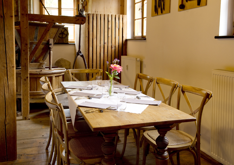 Mühle anschaulich zu machen - Antike Möbel in den Gastronomiebereich integriert
